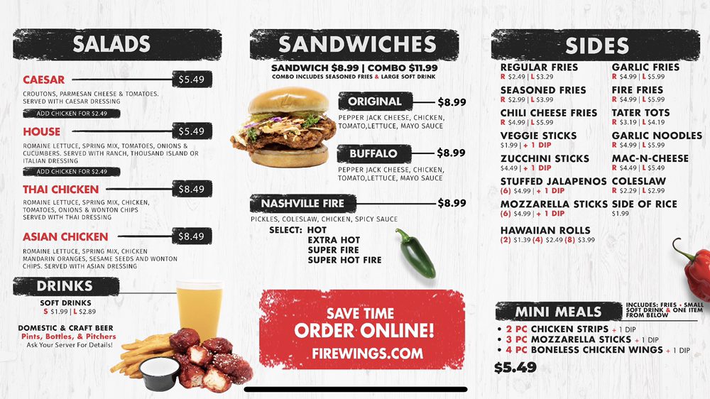 Fire Wings in San Mateo, CA is a casual and trendy spot offering a variety of flavorful wings, chicken strips, and family packs. With options for delivery, takeout, and even catering, Fire Wings aims to please all wing enthusiasts. Their combos, like the 6 Wing Combo and the Chicken Strip Combo, come with seasoned fries and a drink, making for a satisfying meal. Customers appreciate the diverse range of flavors, from savory to sweet to spicy, and the generous portion sizes. The service is described as friendly and prompt, ensuring a pleasant dining experience. Don't miss out on their specials like 85 cent Boneless wings on Mondays and Tuesdays or 88 cent traditional wings on Wednesdays. Visit Fire Wings for delicious wings and a casual dining atmosphere.